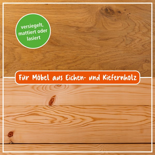 Für lackierte, mattierte und lasierte Eichen- und Kiefernmöbel